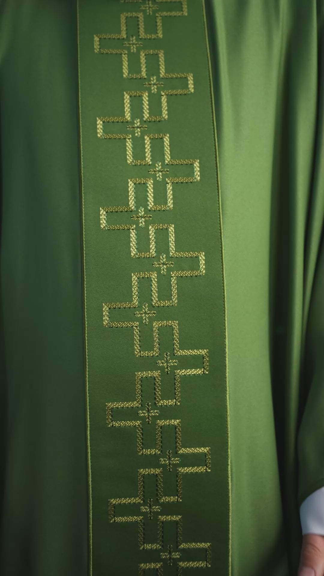 - Wykonany z wysokiej jakości tkaniny w kolorze zielonym, który jest symbolem nadziei, odrodzenia i życia wiecznego. Tkanina jest przyjemna w dotyku i dobrze się układa, zapewniając komfort użytkowania podczas sprawowania kapłańskich posług.