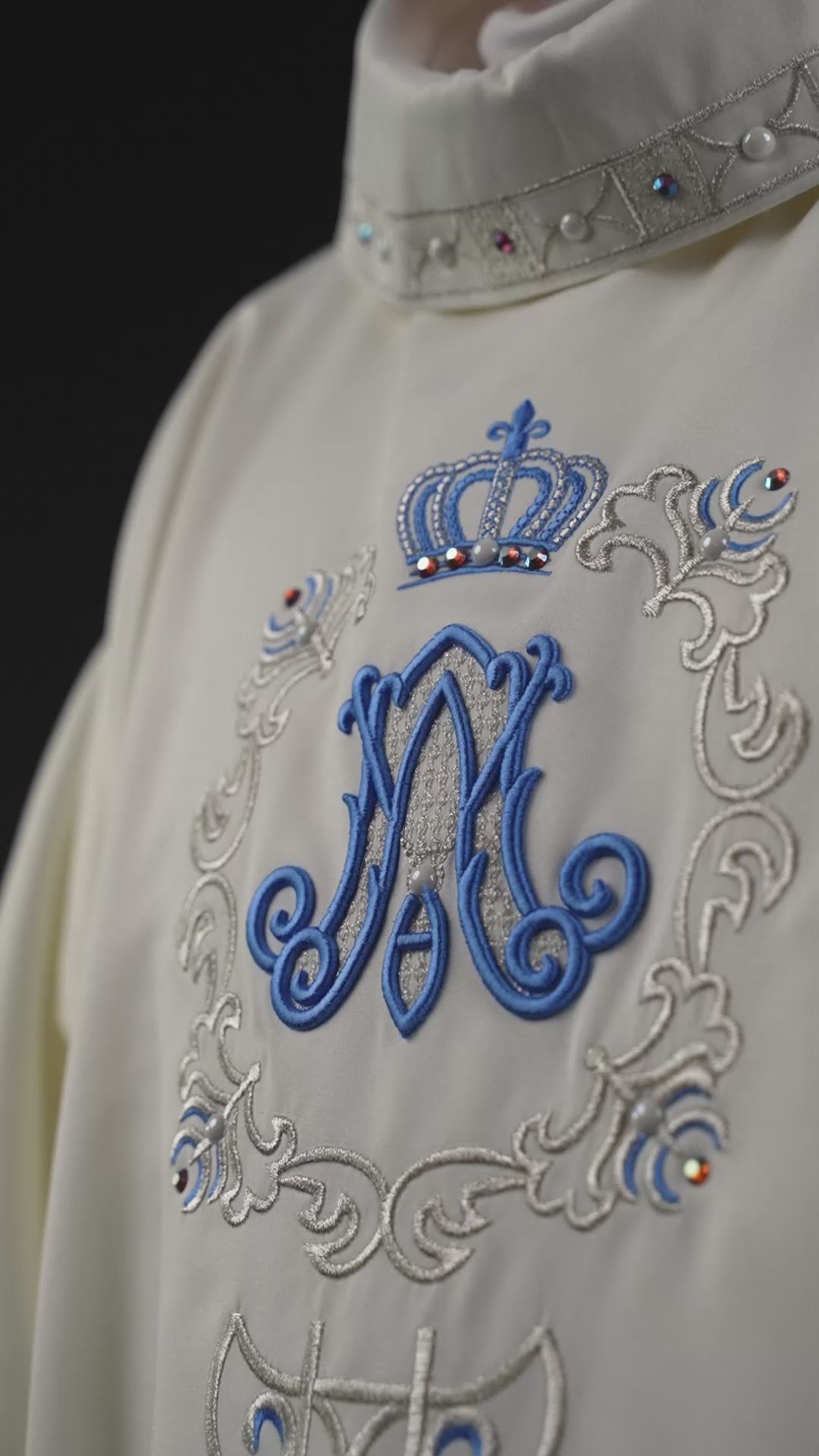Zanurz się w atmosferę boskiego piękna i uroczystości z naszym Ornatem Maryjnym, mistrzowsko wykonanym, by uczcić Najświętszą Maryję Pannę. Nasz ornat to połączenie doskonałej jakości tkaniny pochodzącej z Włoch, haftowania wykonanych detali wysadzonych perełkami i kamieniami, oraz głębokiego szacunku dla religijnych tradycji.