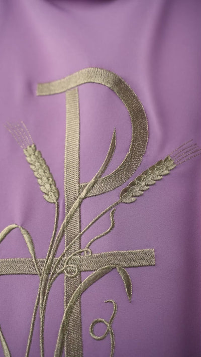 Ornat je izrađen od visokokvalitetne tkanine, ukrašen vezom s euharistijskim simbolom, izrađenim zlatnim nitima, koji prikazuje simbol PAX. Dodatno, rubovi ornata završeni su satenskom, zlatnom trakom, koja se savršeno slaže sa zlatno izvezenim simbolom PAX. Osim toga, ornat je dostupan u svim liturgijskim bojama.